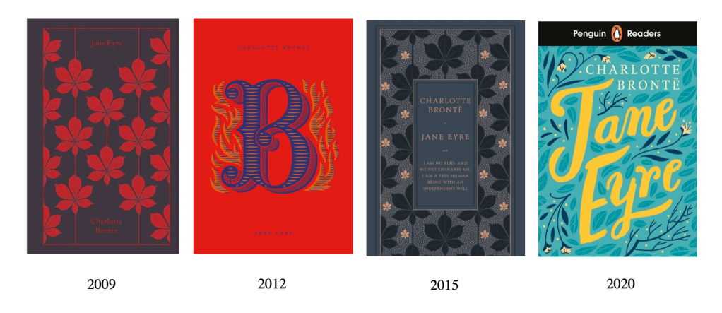 Enter any bookstore, and you are sure to find a wall of novels with typographic cover art. Typography and design play a key role in twenty-first century book marketing—to the point that some media outlets argue modern book design is becoming monotonous. What has prompted this focus on typography? Is it simply a marketing ploy? Franco Moretti has conducted extensive research on the evolution of novel titles. In the article “Style, Inc. Reflections on Seven Thousand Titles (British Novels, 1740-1850),” he argues that titles became increasingly similar to each other by the mid-nineteenth century. He further states, “The title is where the novel as language meets the novel as commodity, and their encounter can be extremely illuminating” (135). Indeed, by analyzing various editions of Jane Eyre by Charlotte Brontë, I suggest the same sentiment can be applied to cover art. Cover art is designed to attract readers, but it also functions as a visual representation of the novel.